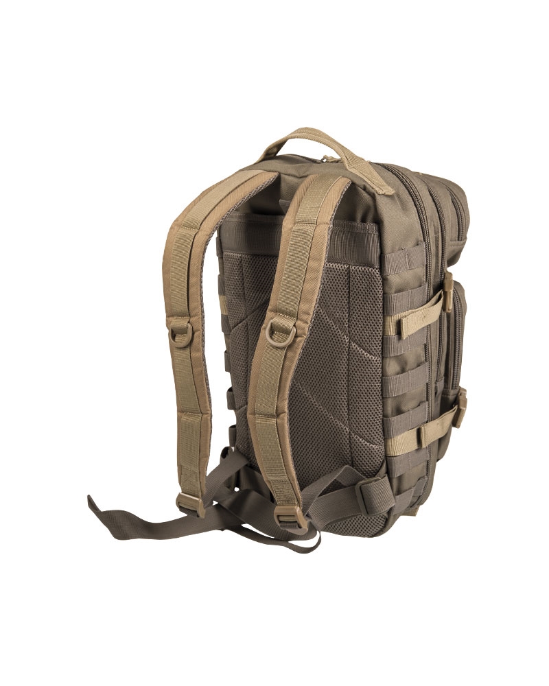 Дана модель тактичного штурмового рюкзака ASSAULT "S" (20 літрів) складається з двох великих відділень із застібкою-блискавкою з різними сітчастими внутрішніми кишенями, двох маленьких передніх кишень, а також вбудованої кишені на липучці для гідросистеми. Всі відділення закриваються на міцні двосторонні блискавки. Ергономічні плечові лямки шириною близько 5 см, регулюються по довжині. Крім того, рюкзак оснащений щільною демпферного спинкою з вентиляційною системою і регульованим поясним ременем на застібці Fastex.